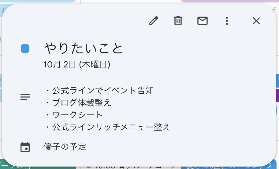 スケジュールとして入れておけば見落としがないし、スマホからもすぐ修正できちゃいます。